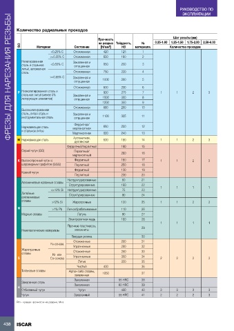 ISO Материал Состояние [Н/мм ] HB материала. Количество проходов