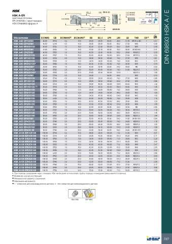Обозначение DCONMS CSI DCONNWS (2) DCONXWS (3) BD BD_2 LPR LBX LB THID CDI (4) kg DIN 69893 HSK A / E